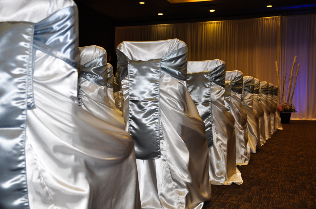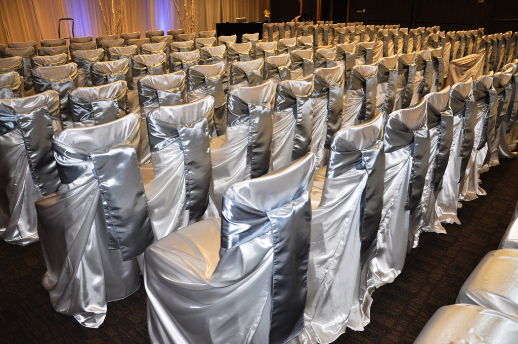 Hotel Arts, Calgary. Satin Self Tie Chair Cover with Silver Satin Sash at Hotel Arts